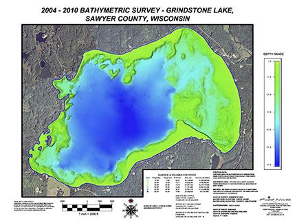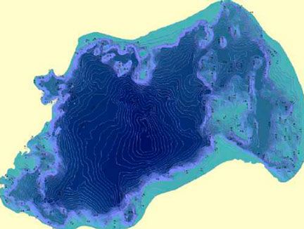 Bathymetry is the measurement of the depths of water bodies from the water surface. It's the lake equivalent to topography.